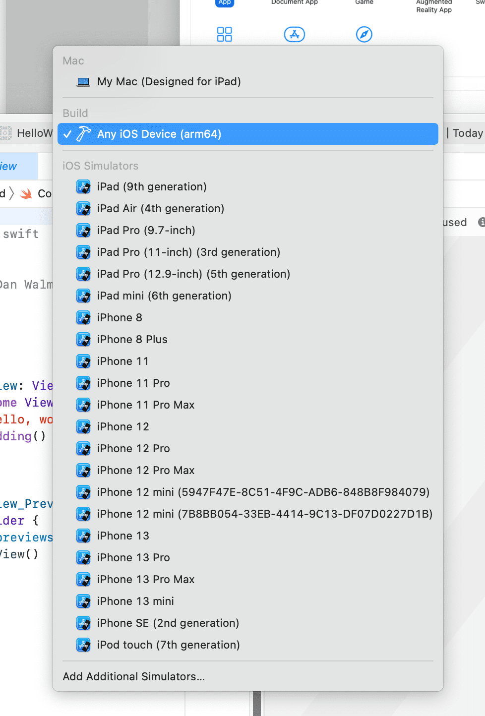 - Click on devices and connect your iPhone or iPad with the USB cable. Xcode will start to provision your phone for development.