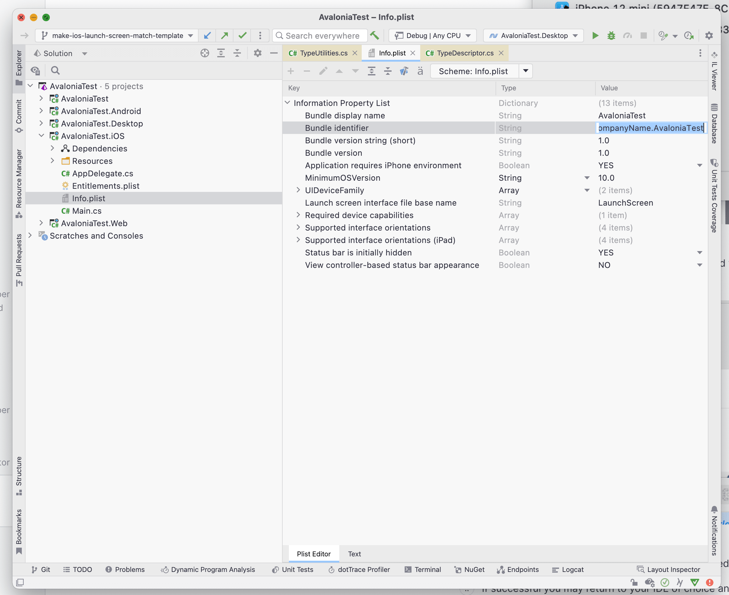 If successful you may return to your IDE of choice and open the info.plist file from the iOS project.