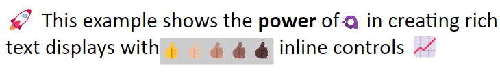 🚀 This <Span BaselineAlignment="TextTop">example</Span> shows the <Bold>power</Bold> of