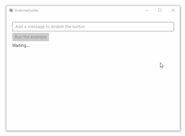 Cet exemple suppose que vous utilisez le modèle d'implémentation MVVM avec le framework ReactiveUI. Cette approche (recommandée) offre une séparation très claire entre la vue et le modèle de vue.