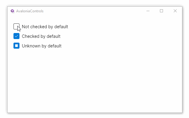 <CheckBox IsThreeState="True" IsChecked="True">Checked by default</CheckBox>