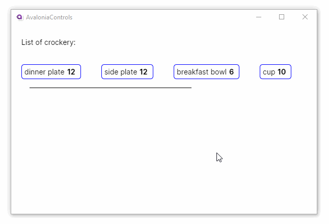 This example binds an observable collection of crockery items to an items repeater control, where some custom layout and formatting for each item is provided by the data template: