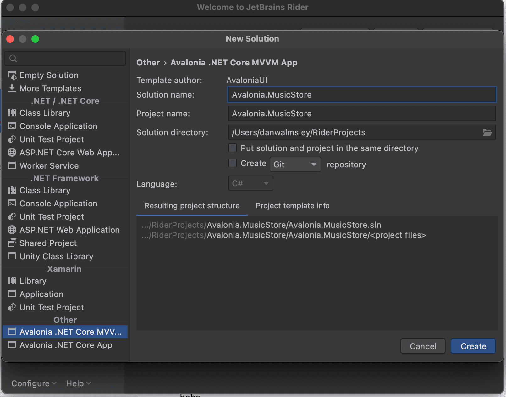 - Enter the Solution name as 'Avalonia.MusicStore'.