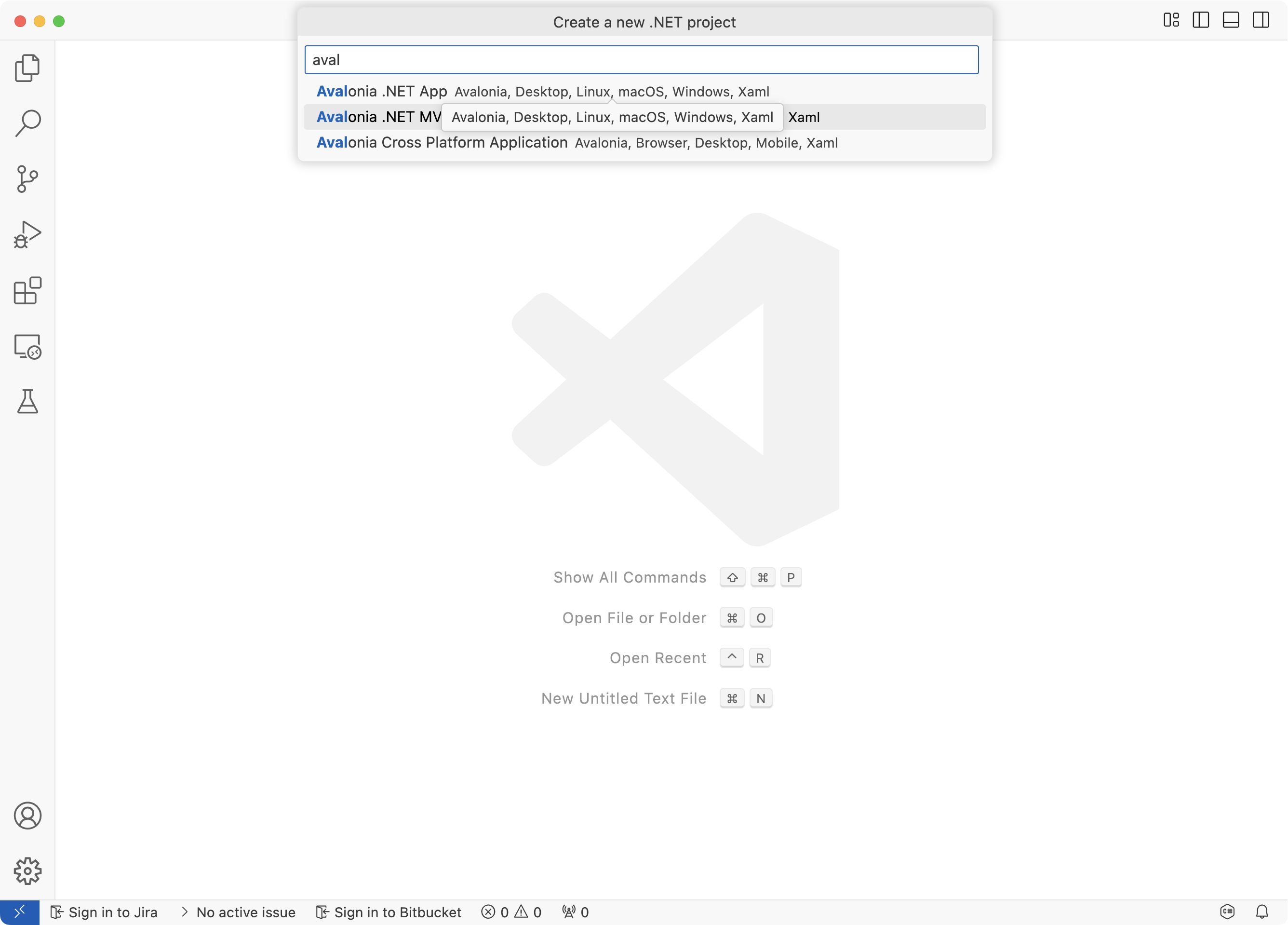 To get started, we're going to use the MVVM Avalonia template: Avalonia MVVM Application (or avalonia.mvvm in the CLI).