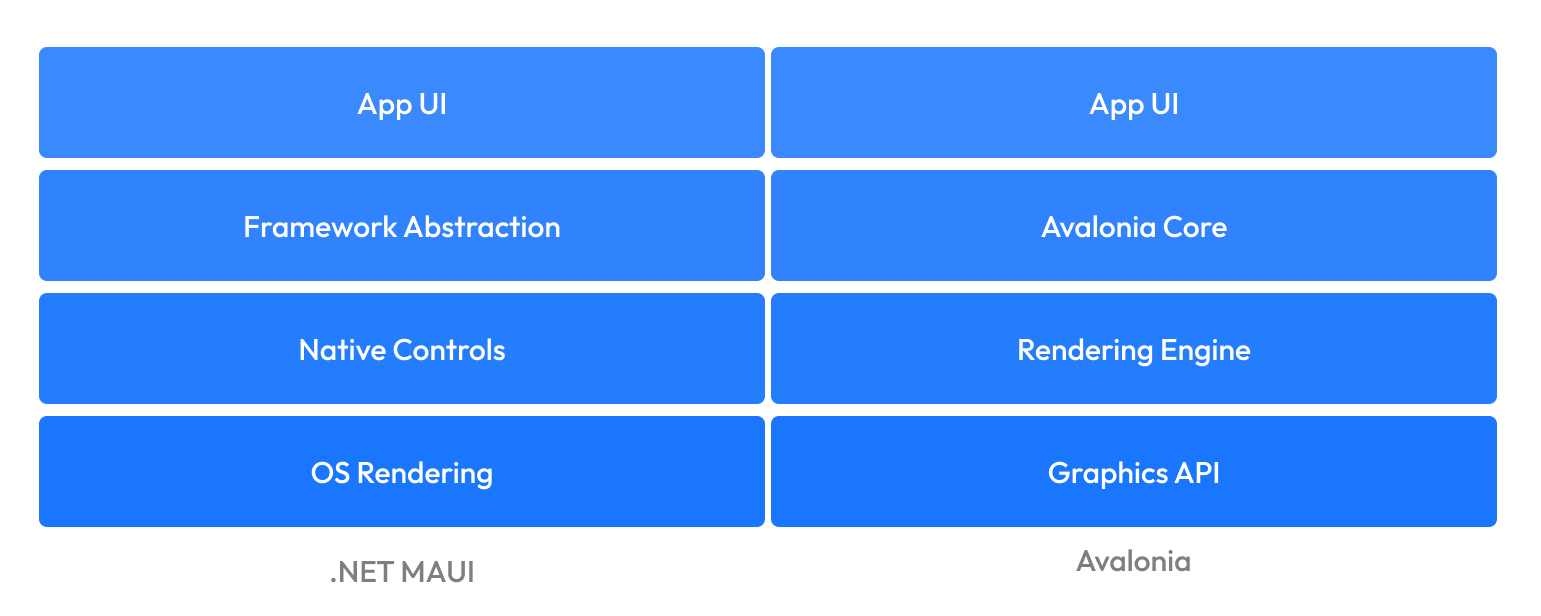 В то время как фреймворки вроде .NET MAUI абстрагируют нативные UI-элементы, Avalonia использует другой подход:
