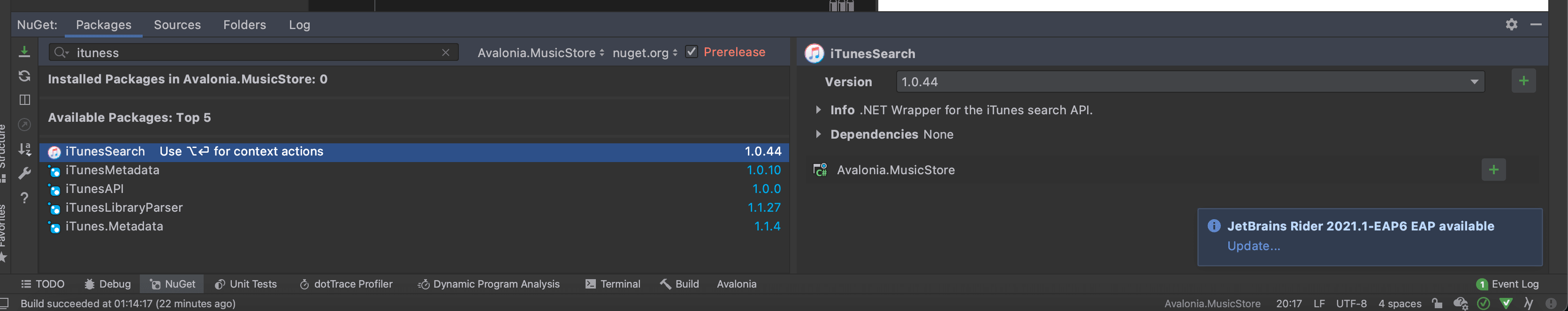 Для реализации реального поиска альбомов в приложении, вы будете использовать NuGet пакет, именуемый Apple iTunes Web API.