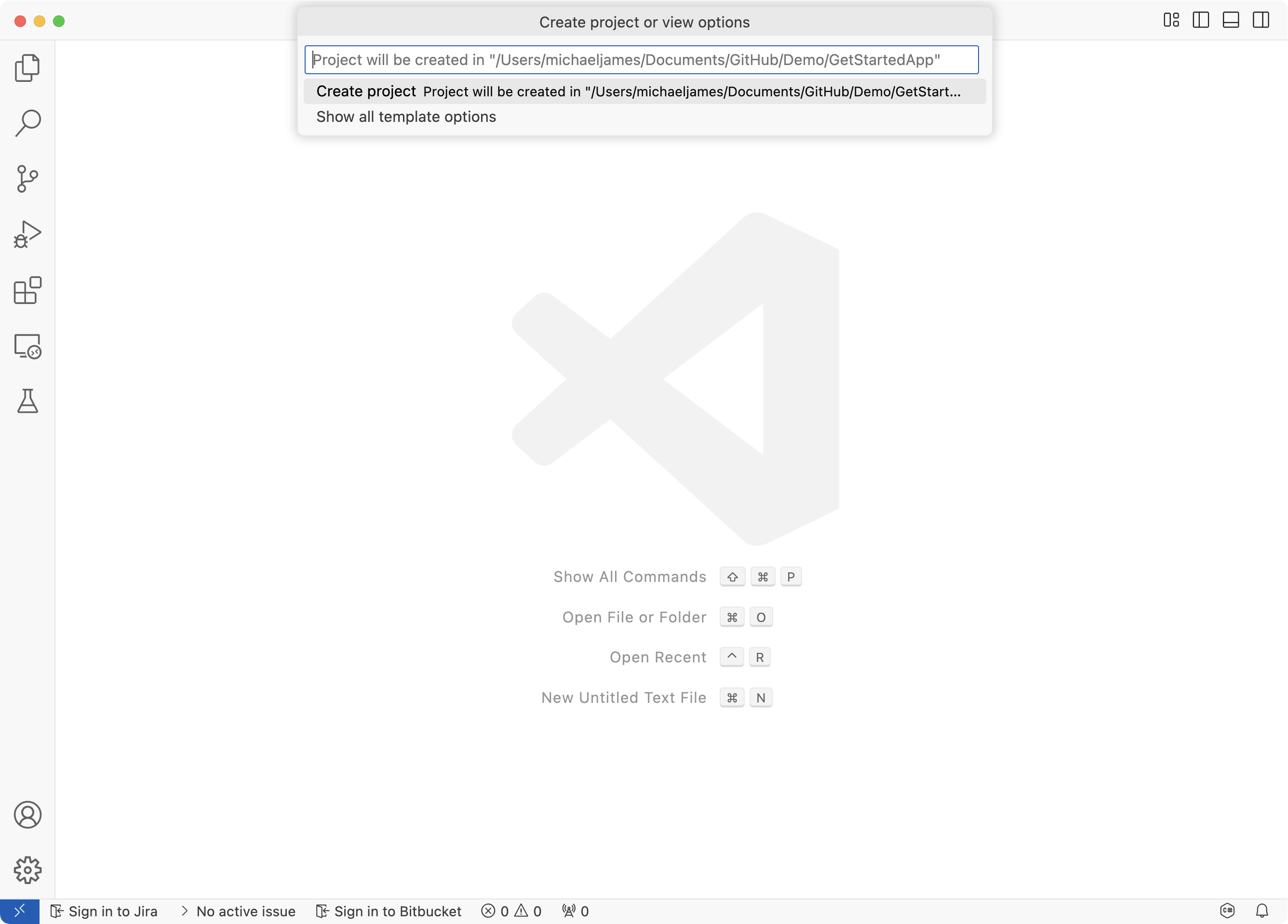 This will create a new folder called GetStartedApp containing the new project.