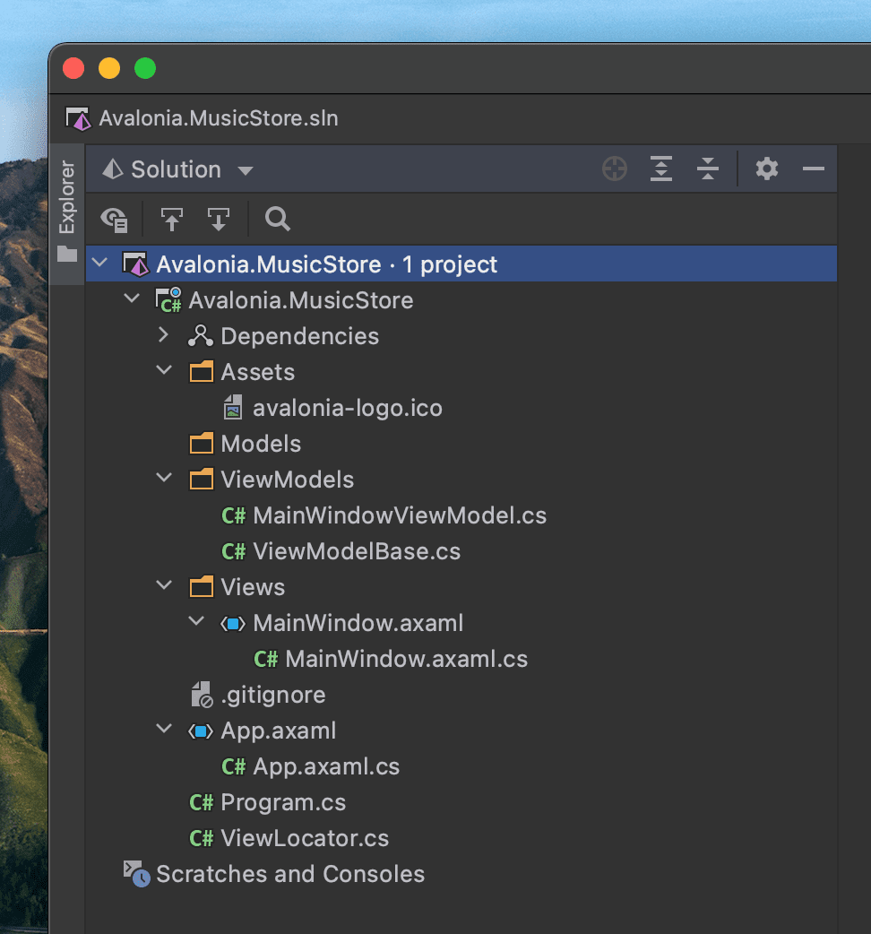 | Views | 这是项目中所有视图的文件夹,它已经包含了应用程序主窗口的视图。在 MVVM 模式中,视图仅包含应用程序的展示部分,即布局和表单、字体、颜色、图标和图片。在 MVVM 中,它们只有足够的代码将它们链接到视图模型层。在 Avalonia UI 中,这里只有足够管理窗口和对话框的代码。 |